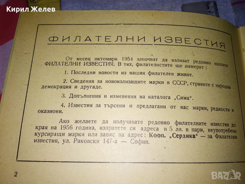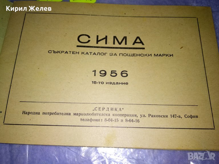 СИМА КАТАЛОГ за ПОЩЕНСКИ МАРКИ 1956г НАРОДНА ПОТРЕБИТЕЛНА МАРКОЛЮБИТЕЛСКА КООП-Я СЕРДИКА СОФИЯ 35488