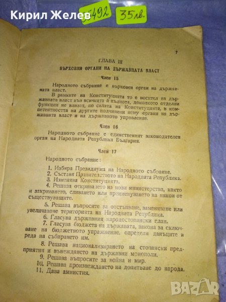 1 ИЗДАНИЕ на ВЕЛИКОТО НАРОДНО СЪБРАНИЕ от 1947 на КОНСТИТУЦИЯ на НАРОДНАТА РЕПУБЛИКА БЪЛГАРИЯ 35492
