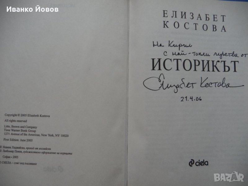 Елизабет Джонсън Костова „Историкът“, издателство „Сиела“, 2006 г., твърда