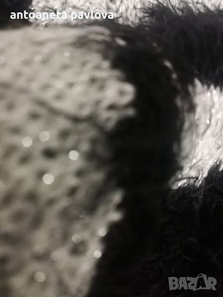 Мек ,леко рошав пуловер в сиво черната гама .Светлата част е примесена с нишки ламе ,които много не си личат на снимките .Дрехи внос .Дължина 63 -64 см, Ширина гръб 60см . Ръкав -51 см.