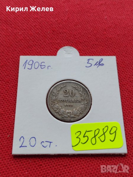МОНЕТА 20 стотинки 1906г. ЦАРСТВО БЪЛГАРИЯ ФЕРДИНАНД ПЪРВИ ЗА КОЛЕКЦИЯ 35889