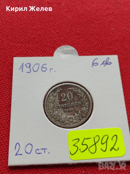 МОНЕТА 20 стотинки 1906г. ЦАРСТВО БЪЛГАРИЯ ФЕРДИНАНД ПЪРВИ ЗА КОЛЕКЦИЯ 35892