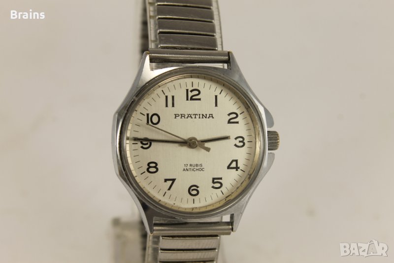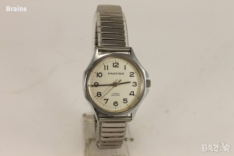 Запазен колекционерски Швейцарски дамски ръчен часовник Pratina от 1960-те години. Отлично запазена каса. Циферблата и стрелките са в отлично състояние.Винтидж стоманена разтегателна верижка.Отлично работещ Швейцарски механизъм със 17 камъка.