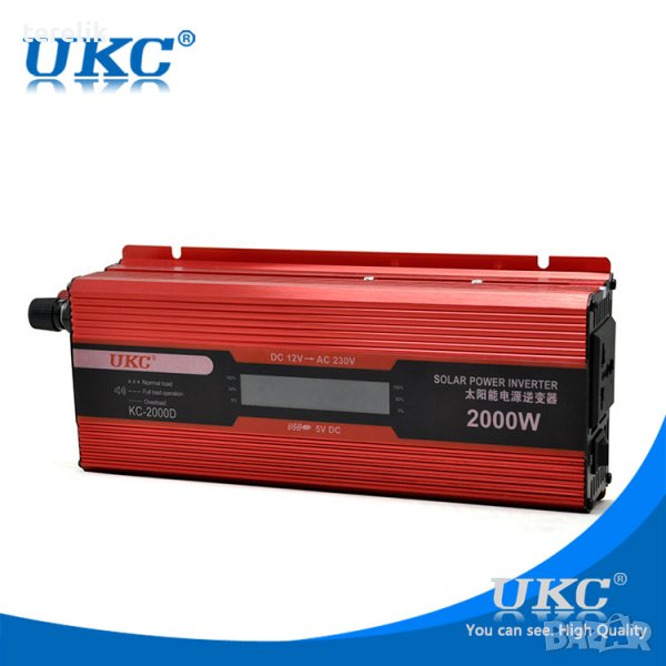 Висококачествен инвертор UKC KC-2000D 12 V-220 V, 2000W - за автомобили преобразува напрежението от акумулатора в 220 V.
