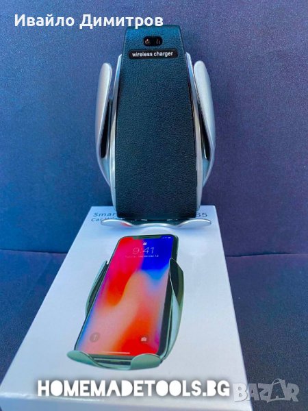 Тук със сигурност бихте могли да заложите на най-модерния дизайн и най-новия модел в областта на зарядните устройства за кола. Стойката е здрава и телефонът ви ще бъде в безопасност. Зарядното устройство работи добре с тънък или силиконов калъф. Самата стойка е оборудвана с безжична система на зареждане.Автомобилното зарядно лесно се монтира във вентилационната решетка. Отваря се автоматично , с помощта на инфрачервен сензор и след това автоматично закрепва вашия телефон. Това означава, че телефонът ви ще е винаги в безопасност . Освен това държачът може да се върти на 360C. Това устройство е и много „умно”. Има вграден чип, който ефективно предпазва телефона от висока температура, презареждане и пренапрежение. Има защита от късо съединение, като автоматично спира да работи. Автоматично се възстановява и токовият изход в случай на късо съединение. Технически характеристики : Тип на артикула : Инфрачервен сензор, автоматичен въздушен вентил за кола, Безжично зарядно устройство за телефон. Автоматична идентификация . Управление с една ръка и автоматично засичане ! Когато доближиш телефона си до поставката в разстояние до 3 см в областта на инфрачервената зона, поставката автоматично регулира ширината си, така че да побере телефона. Монтажът е лесен, като се поставя на вентилацията! Спрямо обикновените поставки за телефони, които се монтират на предното стъкло или на таблото, нашата стилна поставка се поставя в отвора на вентилация. Това позволява по-лесен и удобен достъп до телефона ти. Монтажът не се нуждае от инструменти.
