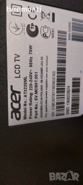 TCON BOARD ,T460HW03 VF CTRL BD, 46T03-C0K for Acer AT3228ML DISPLAY T315HW07 VE борда е гарантирано работещ Демонтиран от телевизор Acer модел AT3228ML със счупен дисплей T315HW07 VE тествана от нашия техник