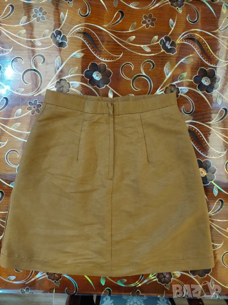 Продавам елегантна светлокафява къса пола Н&М, с 2 джоба отпред, закопчаването отзад е с цип, а отпред има имитация на закопчаване с копчета по цялата дължина.