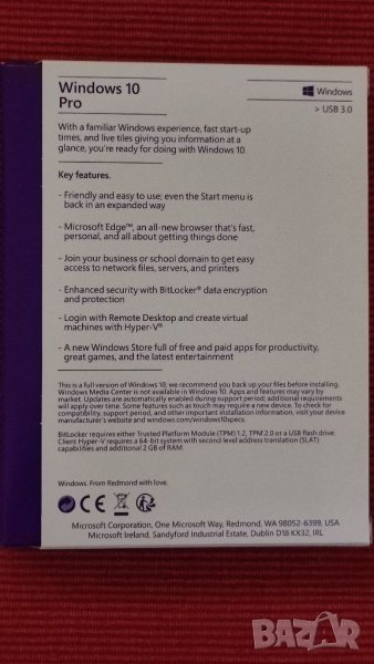 Операционна система Windows 10 pro, разрядност 64 bit, език England, включва USB електронен носител. Пълен комплект,USB електронен носител с кутия,книжка и ключ. Може да се награди до Windows 11 без проблем. Системата ще продължава да използва защитата си от вируси и др до октомври 2025 година и да се актуализира.