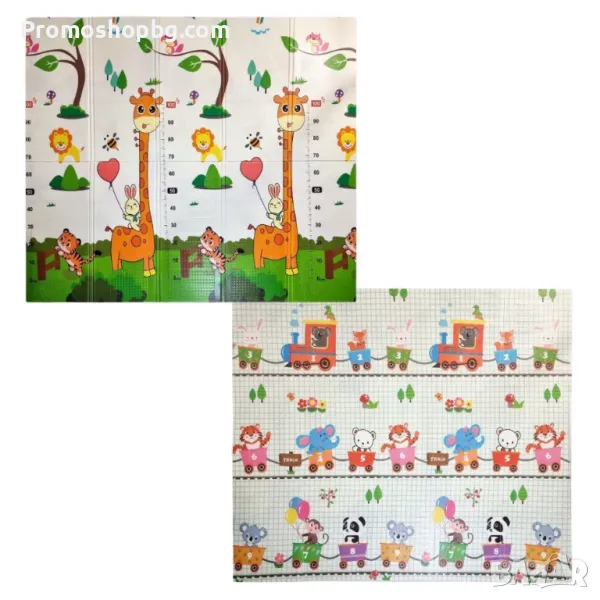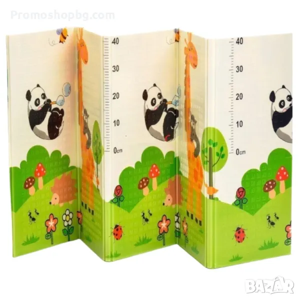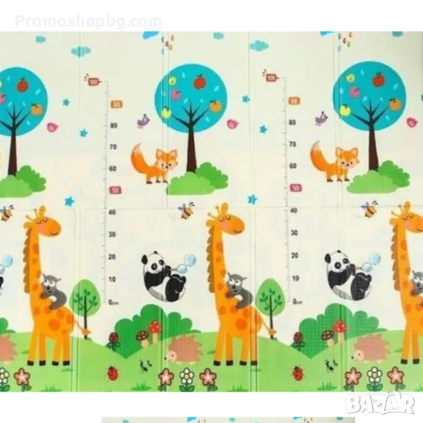 ДВУЛИЦЕН - живи цветове и апликации привличат вниманието на детето и стимулират зрението и въображението му; от двете страни има отпечатани приказни картинки на различни герои, животни, които ще ви позволят да научите думи и цветове; постелката има мярка за височина, благодарение на която лесно можем да измерим малкото дете в легнало положение. Перфектен за учене на пълзене и ходене. Неплъзгащата се конструкция ще се погрижи за безопасността на малкото дете при първите стъпки.