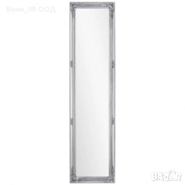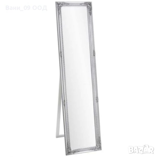 Правоъгълно огледало със стойка, с рамка от евкалиптово дърво с декоративна резба, лакирана в бяло или сиво, 40/160 см.