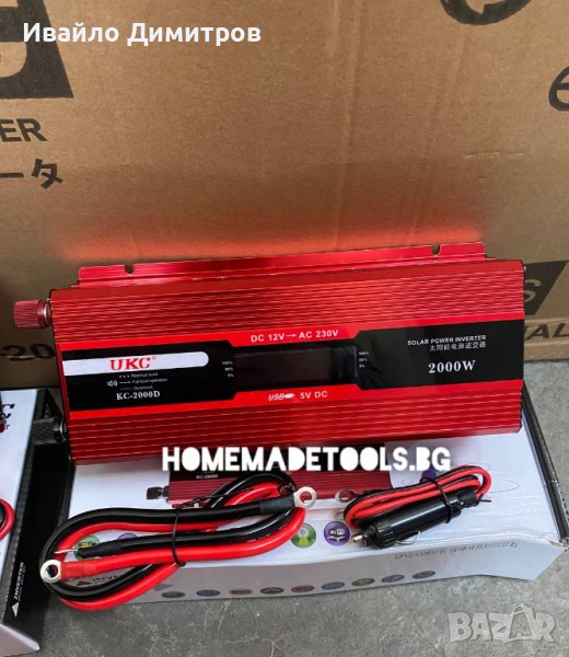 ИНВЕРТОР UKC 2000W 12V / - 220V преобразува напрежението от акумулатора.