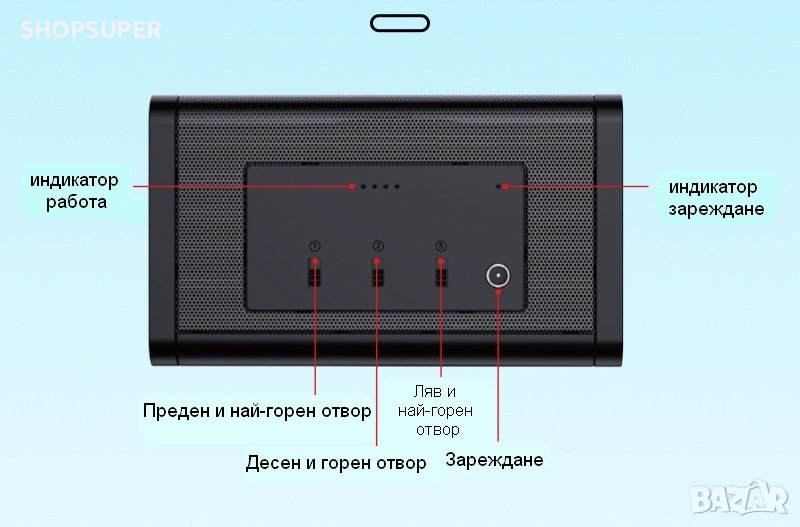 Нов продукт 2023 година . Устройство против аудио и видео запис от безжични камери на честоти 1.2 и 2.4 GHz . При включване издава много слаб звук , а резултата след записа е силен бръмчащ звук . Предотвратява записа от всякакви аудирекордери и телефони . Вътре в корпуса има 37 магнитни свободно движещи се глави . Отпред са разположение 3 превключвателя , отварящи различни отвори , от които излиза нискочестотен шум , който също е доловим от животни и те се страхуват - също така по този начин може да го изпробвате . При включване издава много слаб звук , а резултата след записа е силен бръмчащ звук . Има 3 режима на работа , които се сменят с превключвателите . Има също и два индикатора , при зареждане и работа . От всички страни има решетки , през които излиза звука с посока 180° , пречещ на записа . Устройството трябва да бъде поставено между вас и събеседника на не повече от пет метра разстояние . Трябва да говорите тихо . В комплект с адаптер и USB кабел за зареждане . Функционира с една акумулаторна батерия , която издържа до 4 часа в работен режим .