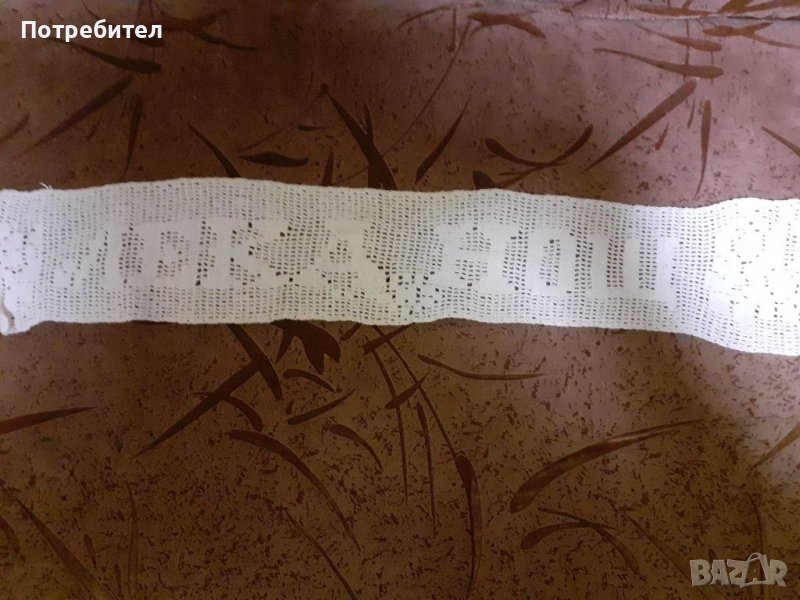 На втората снимка дантела с надпис ''Лека нощ" - дължина 65 см и ширина 12 см. Цена 20 см