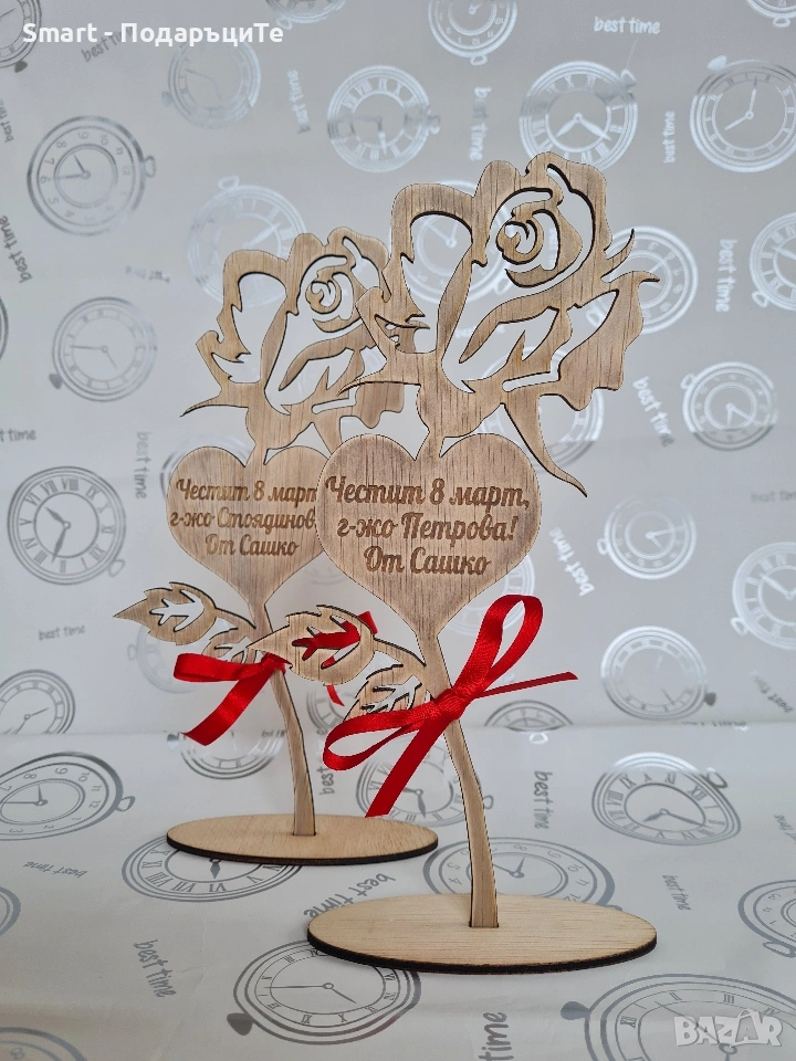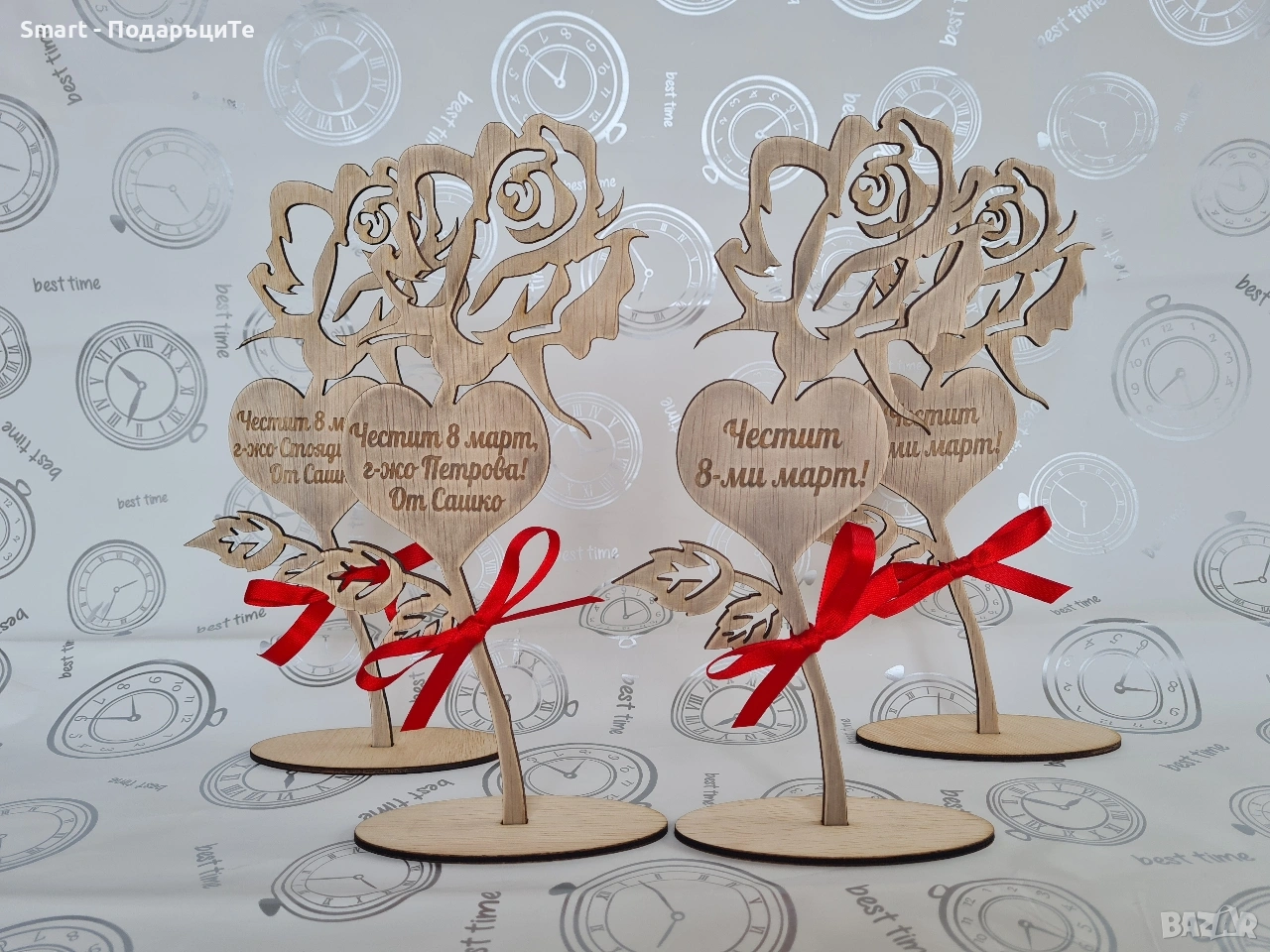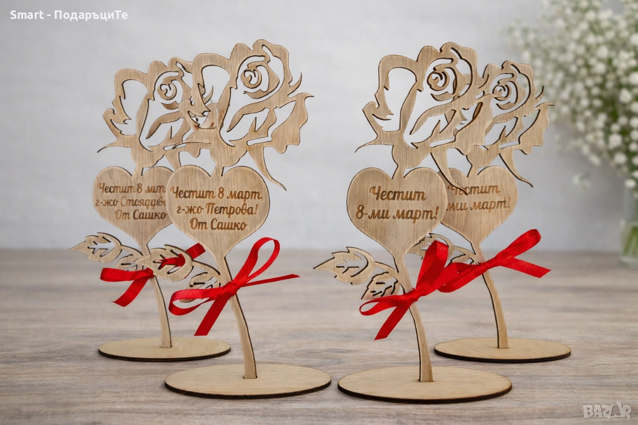 Подарък за Свети Валентин и Осми март - дървена роза с надпис по желание → Обява 39426327