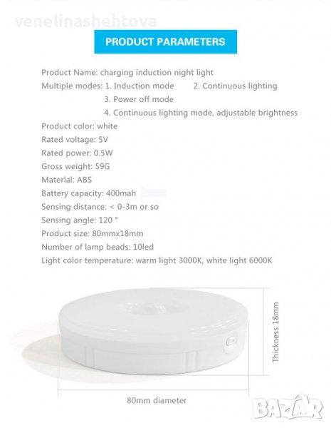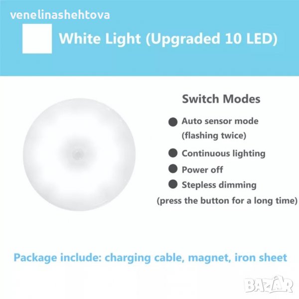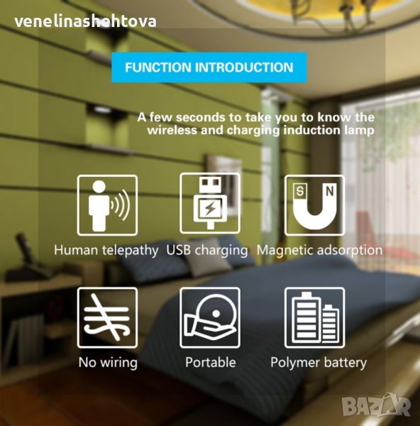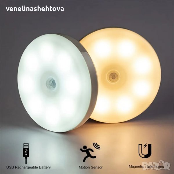 Интелигентна, презареждаща нощна лампа със сензор за движение, подходяща за поставяне в коридора,гардероб или на спалнята, чрез захващане с магнит.Дискретна светлина,за да не се блъскате в тъмното през нощта,и да не събуждате другите хора със силното осветление в дома.