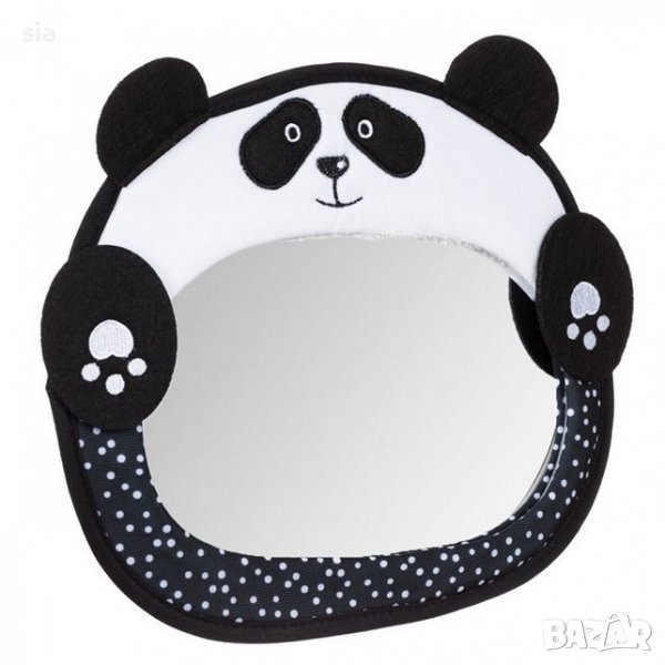 Огледало с шарка на мече панда. Има презрамки, които лесно пасват на повечето седалки и ви позволяват да виждате бебето си в столчето, когато е обърнато назад. Адаптира се към главата на задната седалка и се закрепва с катарама. Можете да виждате и говорите с бебето си през огледалото от страната на водача. Огледалото е тапицирано с мека материя с весела шарка на мече панда.