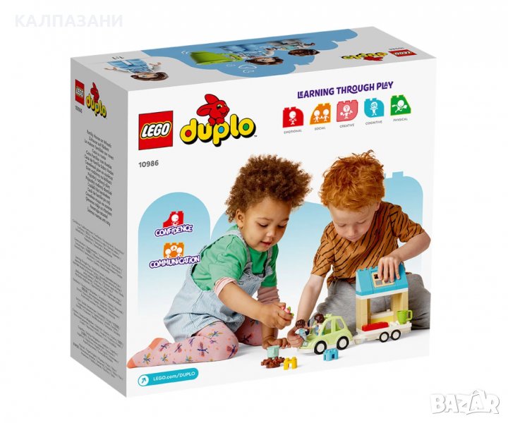 Безкрайна игра на открито – насърчете себеизявата на малките деца, докато се впускат в изпълнени със забавления приключения с комплекта LEGO® DUPLO® Town Семейна къща на колела (10986);
