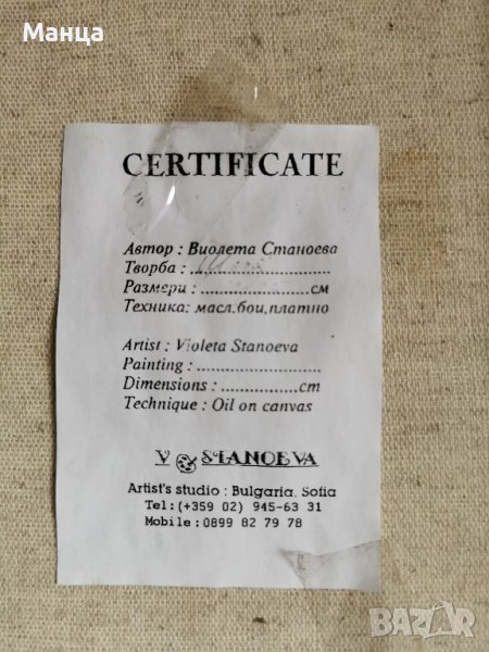 Авторска картина масло върху платно Подписана със сертификат Автор Виолета Станоева Размери 33 на 29 см с рамката и паспартуто