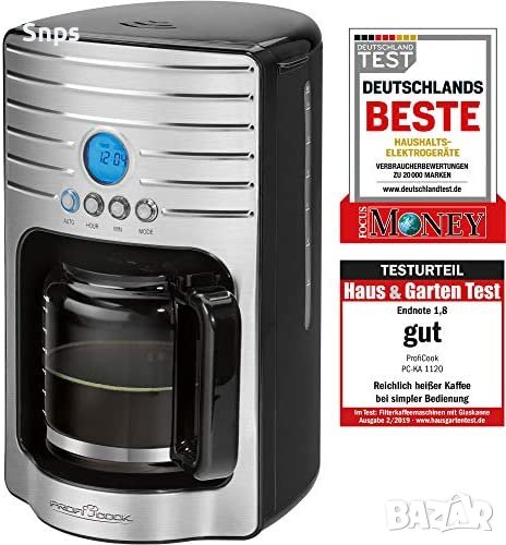 Мощната кафе машина за до 15 чаши (приблизително 1,7 литра) приготвя ароматно кафе и поставя акценти във вашата кухня с висококачествена предна част от неръждаема стомана и елегантен дизайн. С помощта на нагревателната плоча с автоматично изключване, вашето кафе остава горещо за дълго време. Устройството има и защита срещу капки, която се затваря автоматично при изваждане на каната. Така избягвате досадните капки кафе върху нагревателната чиния.