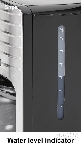 Прозрачният индикатор за нивото на водата е оборудван със скала. При пълнене на водния резервоар нивото на водата за желания брой чаши може да бъде отчетено по всяко време.