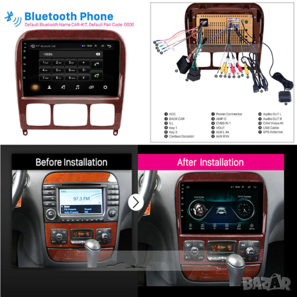 Пълен комплект с цялата рамка, преходни кабели и букси, декодери, предназначени и съвместими за монтиране на конкретния модел автомобил.