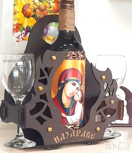 Книга - икона с Богородица, Исус, Св. Мина, или Св. Николай с оригинално пожелание за всякакви празнични поводи и празници на мъж, жена или семейство, юбилей - 50, 60, 70, 80 или 90 години на мъж или жена .