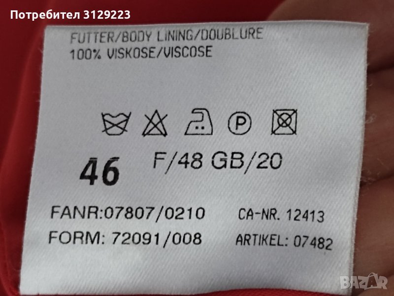 Гръдна обиколка 116/ дължина 65/ рамо 45/