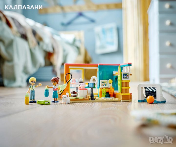 Независимо дали обичат печенето, творческата игра, или и двете, децата на възраст 6+ имат какво да открият в този комплект с играчки за построяване LEGO® Friends Стаята на Лео (41754). Лео е направил студио в стаята си, за да снима съдържание за своя канал за печене. Децата ще се радват да се присъединят към Лео и Оли в техните творчески занимания. Оли е експерт в правенето на видеоклипове, така че е идеалният приятел, който да помогне на Лео. Има много функции и аксесоари, които да вдъхновят ролевата игра, включително котешка играчка, готварска книга и камера. Когато заснемането приключи за деня, децата могат да отворят вратите на балкона, така че приятелите да могат да се насладят на гледка към морето от стаята с плажна тематика. Интуитивни инструкции за построяване Осигурете на вашето малко дете лесно и интуитивно строително приключение с приложението LEGO Builder. С него то може да мащабира и завърта 3D моделите, да записва комплекти и да проследява напредъка си. Хартлейк Сити от ново поколение Децата могат да се сприятеляват, да откриват вълнуващи места и да разиграват реалистични приключения във вселената на LEGO Friends.