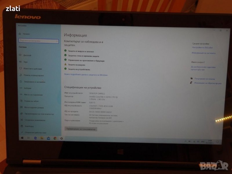 Инсталиран оригинален: Microsoft Windows 10 Home 64-bit