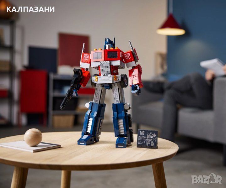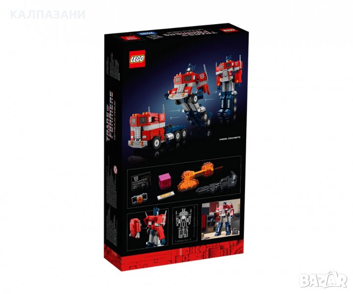 Оптимус Прайм. Лидер на героичните автоботи. А сега впечатляваща модел „2 в 1“ от LEGO® за феновете на „Трансформърс“. Събудете страстта си към вселената на „Трансформърс“ с този удовлетворяващ строителен проект за възрастни, докато сглобявате всички детайли на емблематичен робот. Скрит на видно място Точно като любимия оригинал, този модел на Оптимус Прайм се превръща от робот в камион и обратно. Възхищавайте се на 19-те подвижни стави в режим на робот и отворете камерата на гърдите, за да съхраните Матрицата на водачеството на автоботите. Прикрепете реактивната раница в режим на робот и поставете йонния бластер и брадвата от Енергон в ръцете на автобота. Други автентични аксесоари включват куб с Енергон и опционален панел за кръста. Добавете табелата, за да изложите с гордост на показ страстта си към „Трансформърс“. Потопете се в удоволствието от конструирането Потопете се в удоволствието от конструирането с първокласния модел за конструиране на LEGO за възрастни. Този комплект е завладяващ проект за вас или чудесен подарък за всеки любител на колекционерски предмети от „Трансформърс“.