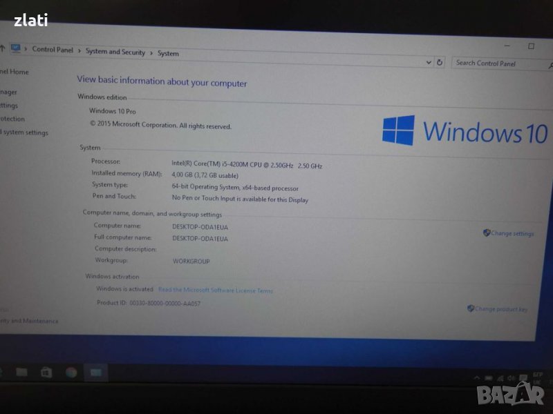 Инсталиран Windows 10 PRO, оригинален към лаптопа