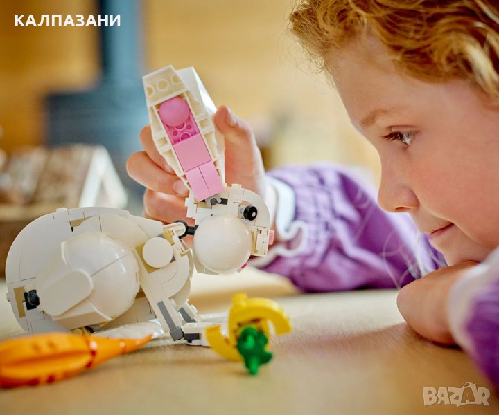 Феновете на LEGO® и любителите на животните ще харесат комплекта за игра Creator Бял заек „3 в 1“, който може да бъде превърнат в сладък папагал какаду или бял тюлен.