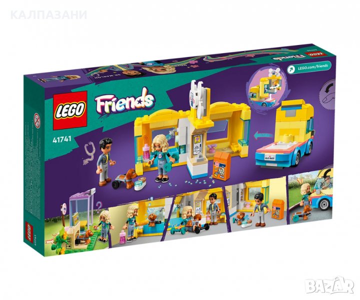 Любителите на животни над 6 години ще се насладят на спасяването и грижата за това очарователно кученце! Комплектът с играчки за построяване LEGO® Friends Микробус за спасяване на кучета (41741) е създаден за разказване на истории. Децата могат да накарат главата на кученцето да стърчи от картонената кутия, докато Нова минава покрай него, и след това да си представят, че се обаждат в спасителния център. Покривът на камиона се вдига, за да разкрие мобилния спасителен център, където децата ще намерят всичко необходимо, за да се грижат за кучето Пикъл. Аксесоарите включват вана за кучета, работна маса, четка, сапун, кофа за боклук, ако, вода и храна, плюс колела, които помагат на Пикъл да ходи. Децата с удоволствие ще променят тъжното изражение на Нова с щастливо, докато тя се грижи за Пикъл. Завладяващо строителство Пригответе се за лесно и интуитивно строително приключение с приложението LEGO Builder. С него децата могат да мащабират и завъртат 3D моделите, да записват комплекти и да проследяват напредъка си. Добре дошли в Хартлейк Сити от следващо поколение Децата се сприятеляват и откриват вълнуващи места във вселената на LEGO Friends, където могат да се наслаждават на творческа игра и да разиграват приключения от реалния живот.