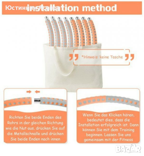 Hula Hoop е изработен от 8 разглобяеми части от неръждаема стомана, лесен за сглобяване, и сторбичка за лесно съхранение и транспортиране. Така че можете да го вземете със себе си навсякъде и да го използвате навсякъде у дома, на работа, във фитнеса или в парка.