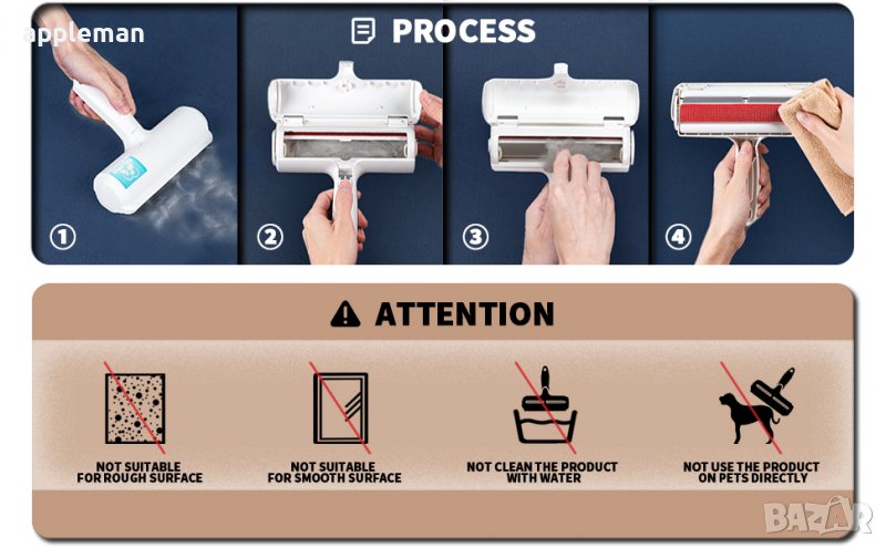 Продуктът слага край на лепкавите ролки и честото харчене на пари за консумативи. Самопочистващата се четка може да се използва върху всякакви мебели: столове, легла, фотьойли, дивани, дори за тапицерията на колата. Освен това почиства отлично и всякакъв вид текстил: сака, панталони, ризи, палта и др.