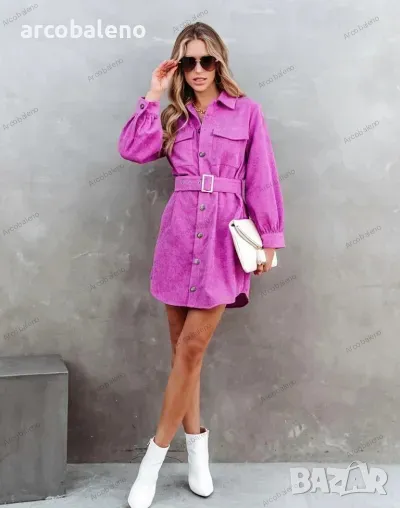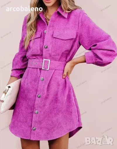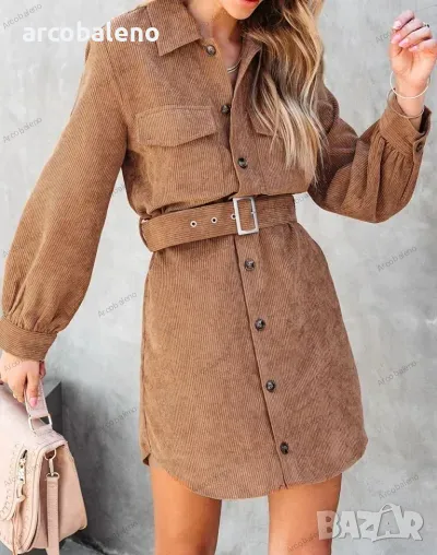 Дамска ежедневна едноцветна рипсена рокля с колан в модерен стил и мека и удобна материя. Независимо дали е ежедневно, за излизане или за работа, той може да се носи, а методът на пране може да бъде машинно или ръчно пране. Материята е устойчива на намачкване и на начупване. Размерът се измерва на ръка, като е нормално да има грешка от 1-3см.