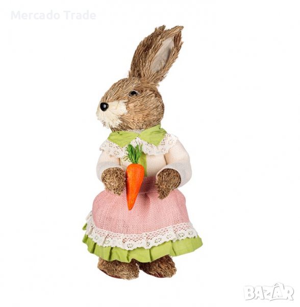 Великденска декоративна фигура Mercado Trade, Заек с рокля екрю и морков → Обява 39439442