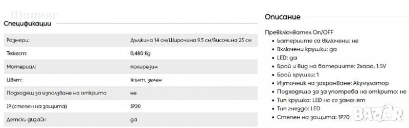 Води се лампа, но е повече за украса и настроение. Продавам я, защото свети слабо, с LED светлини, очаквах да е по-силна светлината. Може да се насочва на всички посоки, с две малки батерии (ААА), които не са включени.
