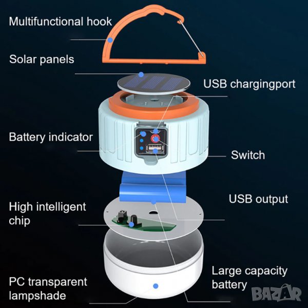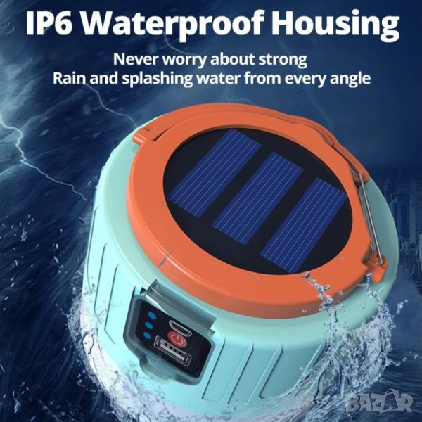 Соларна лампа, презареждаема, лампа, преносима, водоутойчива, акумулаторна, батерия, къмпинг, LED
