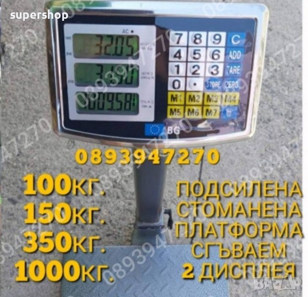 * до 150кг. - РАЗМЕР НА ПЛАТФОРМАТА 40см x 50см . МЕТАЛЕН 2 ДИСПЛЕЯ, СГЪВАЕМ, ПОДСИЛЕНА РИФЕЛОВА ПЛАТФОРМА цена - 89.00лв.
