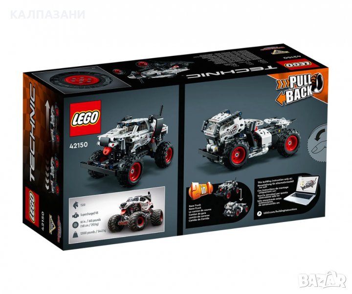 Познавате ли дете на възраст 7+, което обича Monster Jam™? Тогава вижте този страхотен камион LEGO® Technic Monster Jam Monster Mutt™ далматинец (42150) с функция „издърпване назад“! С реалистични графични детайли и цветове, този модел камион отдава почит на любим камион на феновете. Издърпването назад позволява на децата да се състезават с камиона си или да пресъздават триковете, които са виждали на истинските арени на Monster Jam. Подарък камион чудовище „2 в 1“ Осигурете на децата още повече възможности за игра с камиона играчка „2 в 1“, който се превръща в състезателен камион, допълнен с функцията за издърпване назад. Вдъхновете въображението им С превозни средства, които изглеждат и функционират като оригинала, моделите за конструиране LEGO Technic предлагат забавно въведение в конструирането и техниката за малките фенове на LEGO. Изтеглете приложението LEGO Builder и навлезте в един нов свят на строително забавление, където децата могат да мащабират и завъртат 3D модели, да записват комплекти и да проследяват напредъка си.