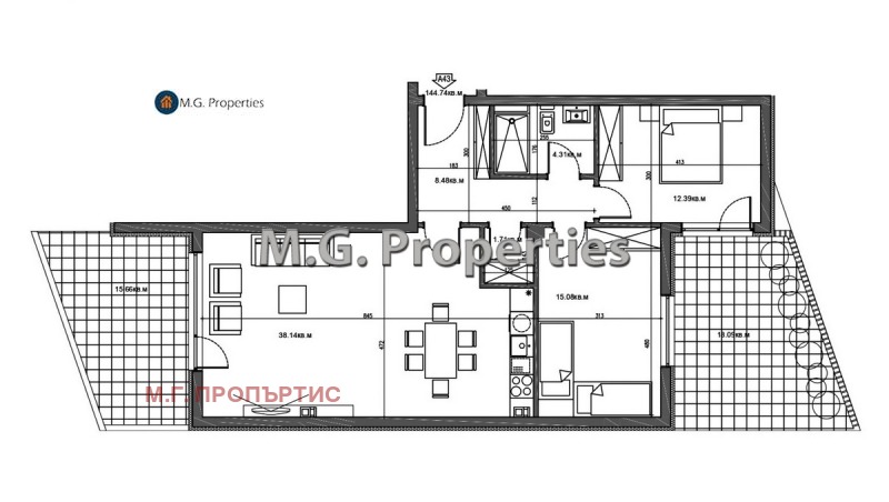 - две големи тераси - 18,09 м.2 и 15,66 м.2.