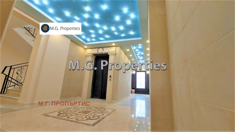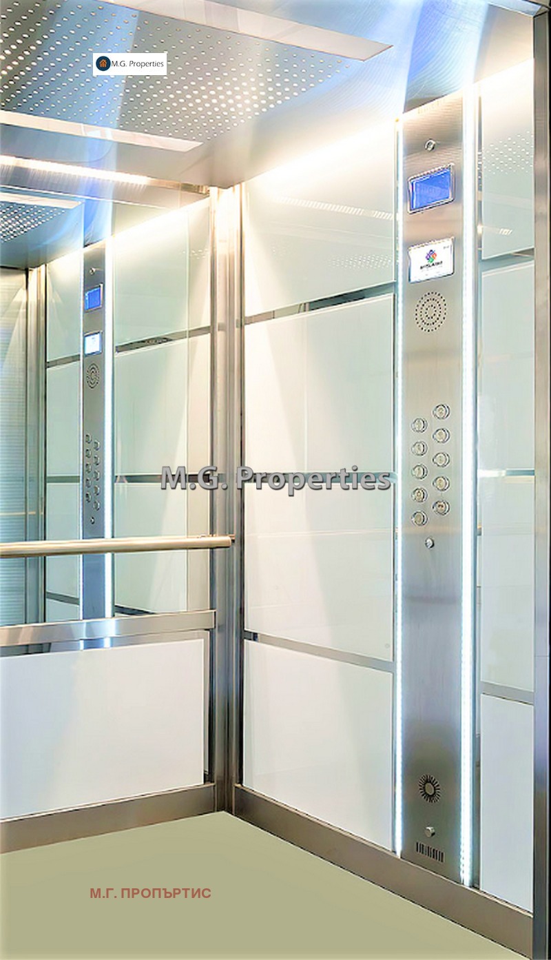 Общите части са с настилка от гранит, Каменни рамки около прозорците, Каменни рамки около асансьорите, Фасадно осветление, Външни и вътрешни парапети от ковано желязо по индивидуален проект.