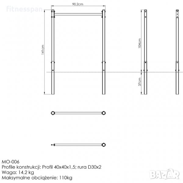 Височина на конструкцията 225 см. Максимално теглона трениращия 110 кг.