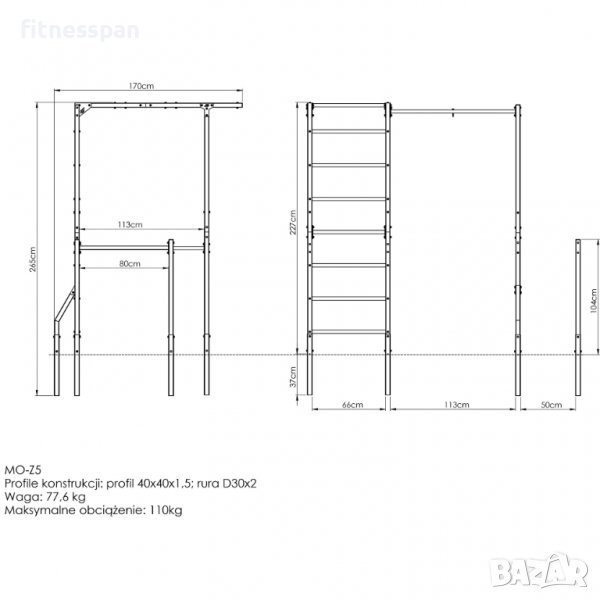 отлична изработка - масивни метални профили и допълнителни укрепвания от дебела ламарина гарантират стабилност години наред; гъвкавост - издърпайте се на щангата, правете скокове на лостовете или закачете любимата си боксова круша. Можете да направите всичко на една структура;