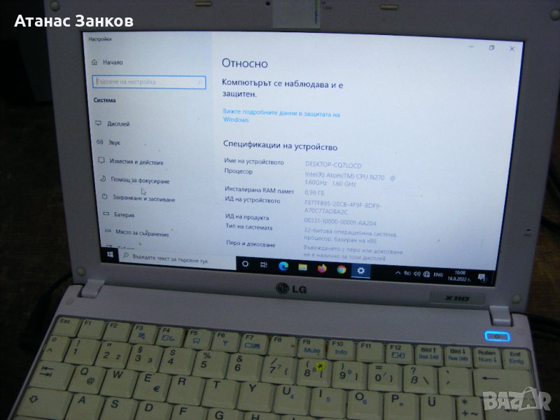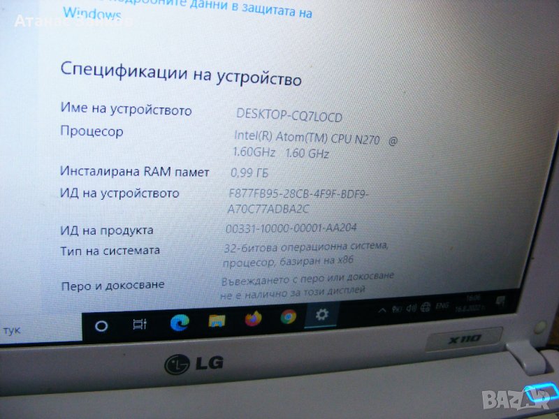 Лаптоп за части LG X110 → Обява 39444970
