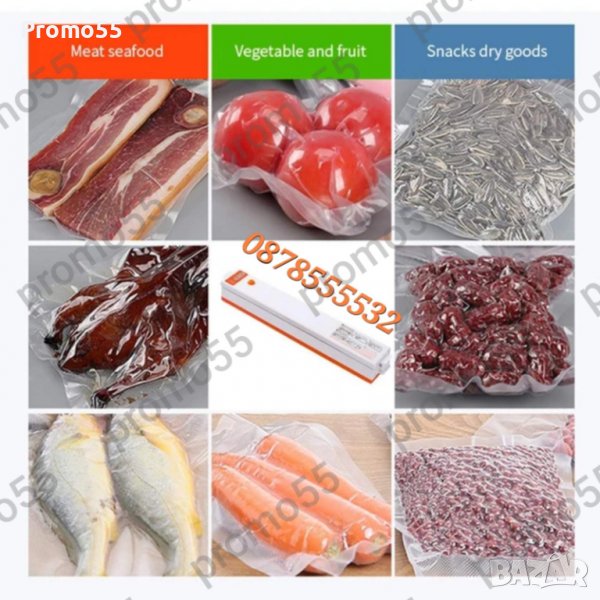 Създаден със специална технология, която изсмуква въздуха от пространството край желания продукт, уредът е изключително лесен за употреба. Поставяте продуктите в найлон, притискате с устройството и натискате бутона за включване, въздухът край продуктите изчезва и всичко е херметическо затворено. Без опасност от овлажняване и бързо разваляне на продуктите, без смесване на миризми и компактно съхранение в хладилника.