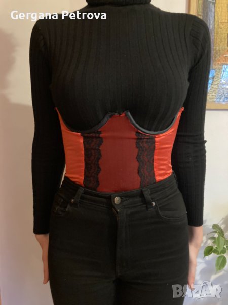 * Декоративен червен корсет.
