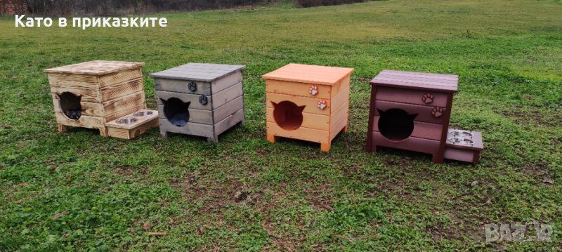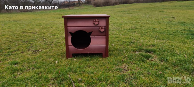 Перфектната къща за коте. Подходяща е за използване, както на открито в двора, така и в закрити помещения, като например вашата всекидневна, тераса или коридор. Къщите за котета са изключително прецизно изработени, като при тяхното конструиране са използвани единствено и само висококачествени материали, което ги прави красиви и в същото време здрави и напълно безопасни за вашите котета. Дървеният материал използван при изработката на къщите за котета е от импрегнирана и добре обработена иглолистна дървесина. Използваме единствено и само екологични и високоефективни лепила и консумативи, които гарантират за максималната безопасност на вашето коте и безупречната устойчивост на къщата срещу атмосферни влияния и други вредители. Разполагат с монтирани крачета, за по-лесно местене и транспортиране, а същевременно по този начин къщата за котета е по-високо от земята, което допринася за по-добрата топлоизолация. Къща за котка - Ретро 60лв.Доставка до офис на Еконт - 11лв.Дължина:42см.Ширина:42см.Височина:42см.Светъл отвор:18см. Къща за котка - Винтидж 70лв.Доставка до офис на Еконт - 11лв.Дължина:42м.Ширина:42см.Височина:42см.Светъл отвор:18см. Къща за котка - Кафява 90лв.Доставка до офис на Еконт - 11лв.Дължина:42см.Ширина:42см.Височина:42см.Светъл отвор:18см. Аксесоари:-Врата от PVC(Кристал) -11лв. -Легло от водонепромокаем плат-22лв. - Два броя метални купи в дървена стойка:-С ретро/винтидж- 22лв.-С кафяво-28лв.-М ретро/винтидж- 28лв.-М кафяво-33лв. Може да разгледате в другите ни обяви! -Ръчно изработени-Безвредни боя и лак на водна основа.-Естествена дървесина-Произведени в България Научи повече на тел.:-0878444416
