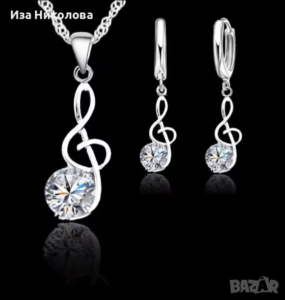 Сребърно колие и обици Музикални ноти → Обява 39446383